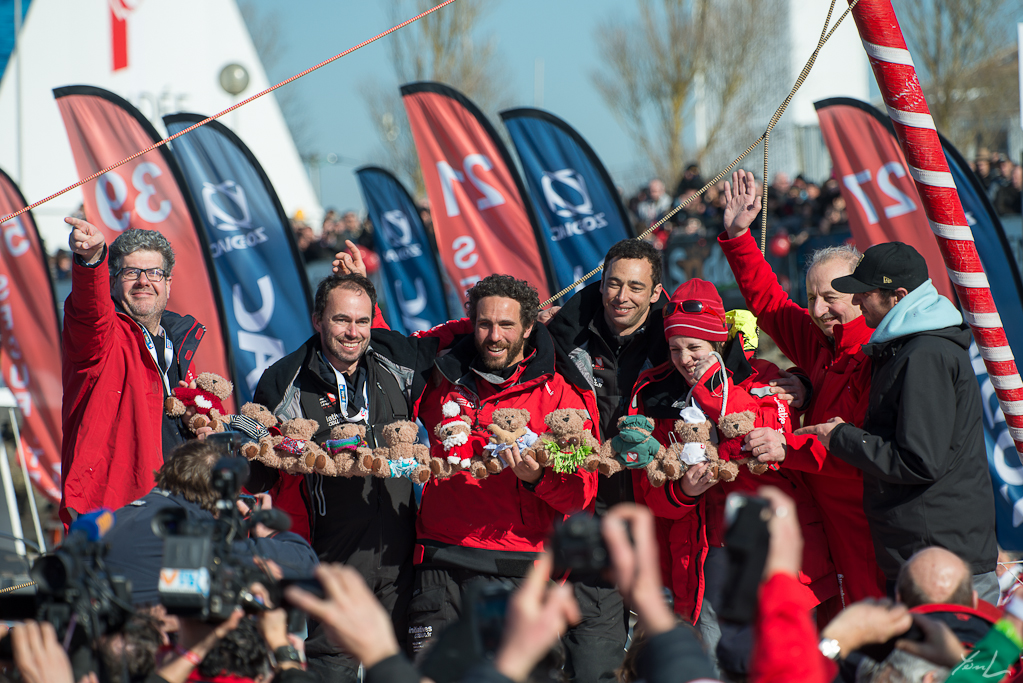 Le 17 février 2013, après 98 jours, 21 heures, 56 minutes et 10 secondes en mer, Tanguy de Lamotte bouclait son premier Vendée Globe en franchissant la ligne d’arrivée aux Sables-d’Olonne. À bord de son Initiatives-Cœur, il terminait en 10ᵉ position, mais son véritable exploit allait bien au-delà du classement. Grâce à son engagement pour Mécénat Chirurgie Cardiaque, son aventure avait permis de financer plusieurs opérations d’enfants atteints de malformations cardiaques. Accueilli chaleureusement par une foule enthousiaste, il célébrait un tour du monde réussi, mêlant performance, générosité et esprit de solidarité. Et j’étais encore la.